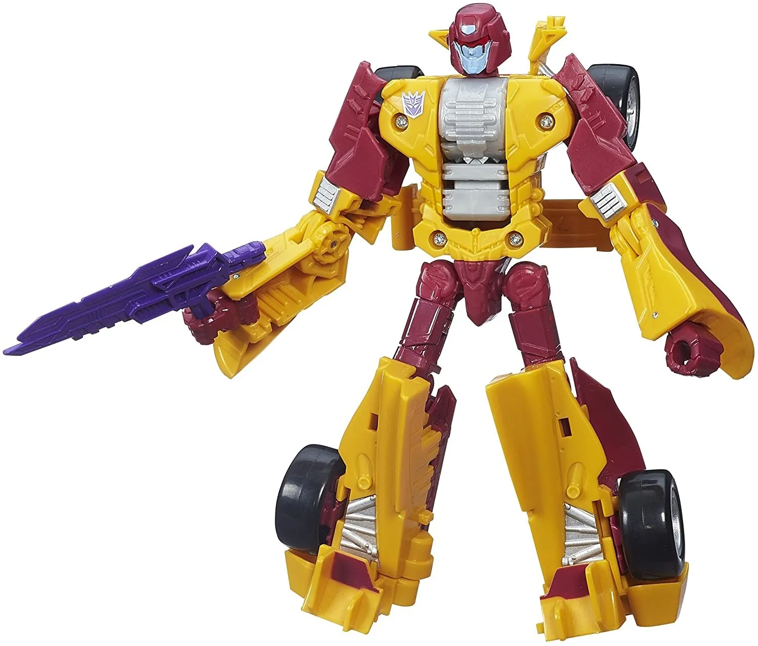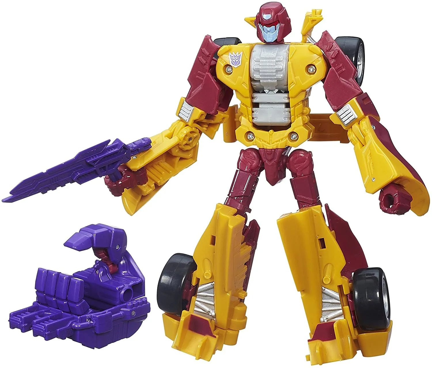 Dragstrip transforms from robot to Race Car and back and includes his respective weaponry. Each Combiner Wars figure allows for an infinite amount of combining action as the joints of Voyager Class figures allow Deluxe figures to be interchanged to assemble together. Choose your favorite Decepticon or Autobot Combiner or mix and match figures as desired based on the original 80's Scramble City G1 Transformers concept.