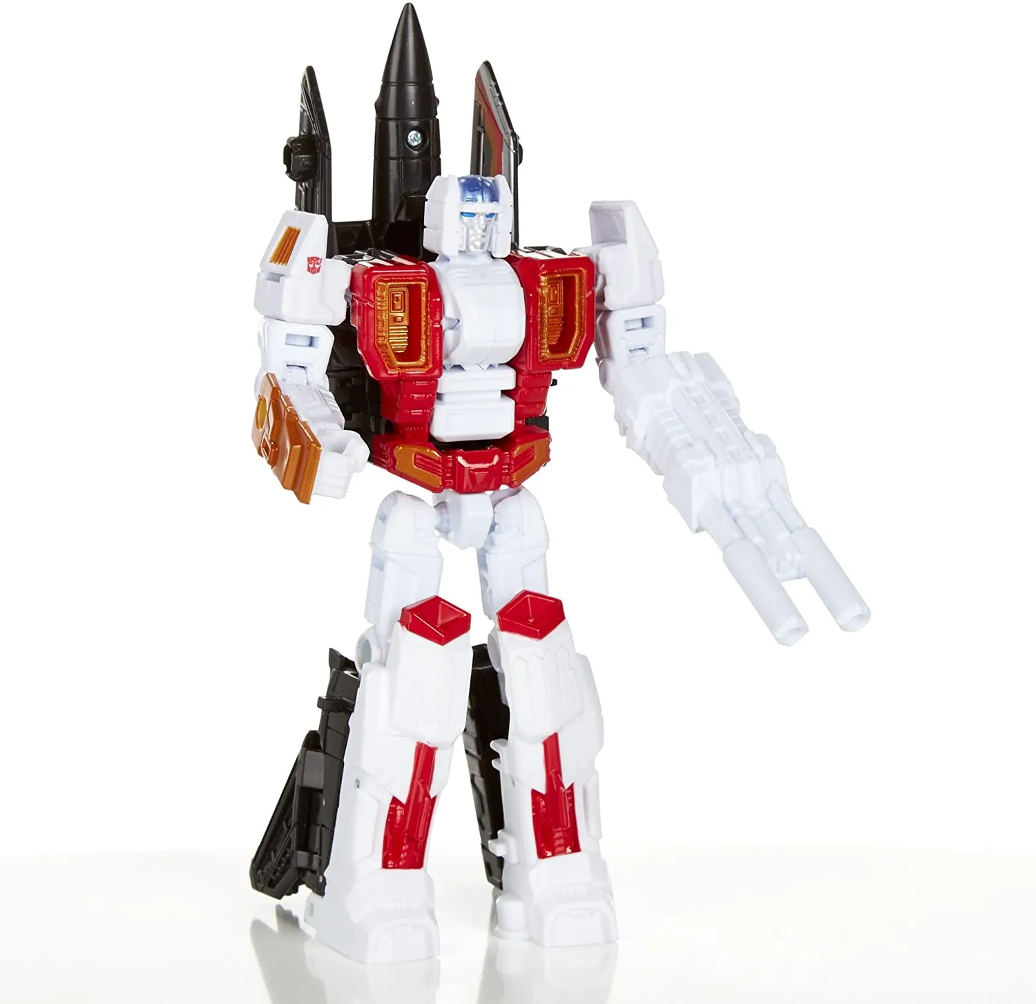 Air Raid transforms from robot to Fighter Jet and back and includes his respective weaponry. Each Combiner Wars figure allows for an infinite amount of combining action as the joints of Voyager Class figures allow Deluxe figures to be interchanged to assemble together. Choose your favorite Decepticon or Autobot Combiner or mix and match figures as desired based on the original 80's Scramble City G1 Transformers concept.