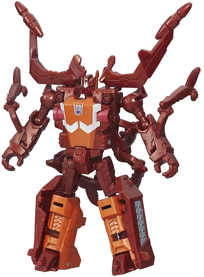 Transformers Generations Combiner Wars Legends Chop Shop figure stands 3.8 inches tall in robot mode. Chop Shop transforms from robot to Beetle and back and includes his respective weaponry.
