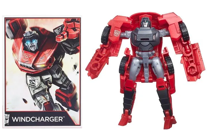 Transformers Generations Combiner Wars Legends Windcharger figure stands 3.8 inches tall in robot mode. Windcharger transforms from robot to Sports Car and back and includes his respective weaponry.