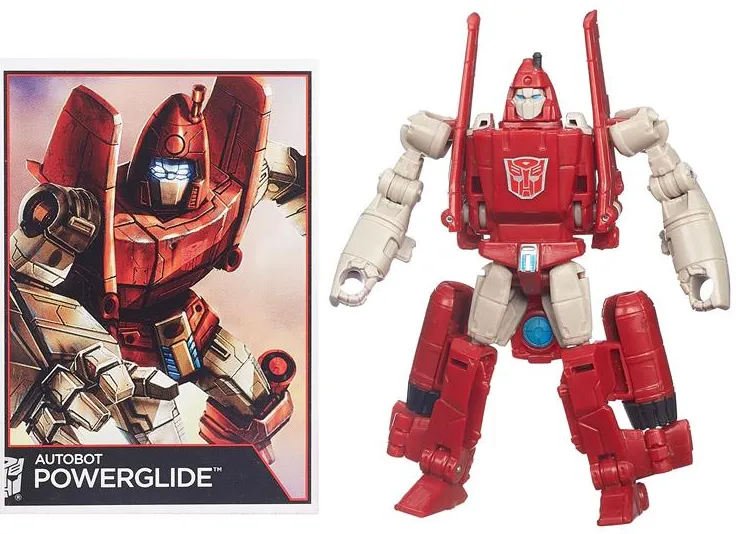 Transformers Generations Combiner Wars Legends Powerglide figure stands 3.8 inches tall in robot mode. Powerglide transforms from robot to Fighter Jet and back and includes his respective weaponry.