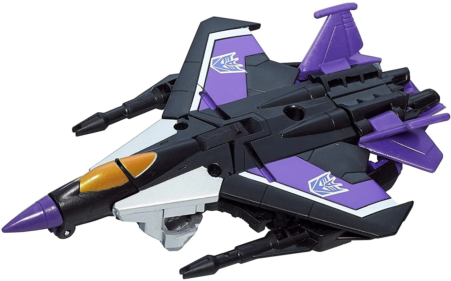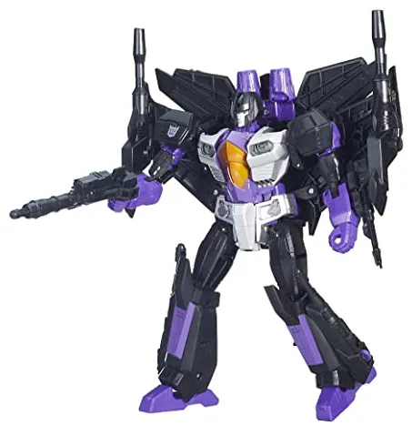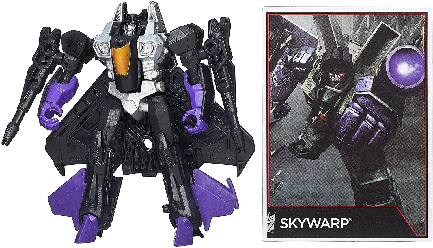 Transformers Generations Combiner Wars Legends Skywarp figure stands 3.8 inches tall in robot mode. Skywarp transforms from robot to Fighter Jet and back and includes his respective weaponry.