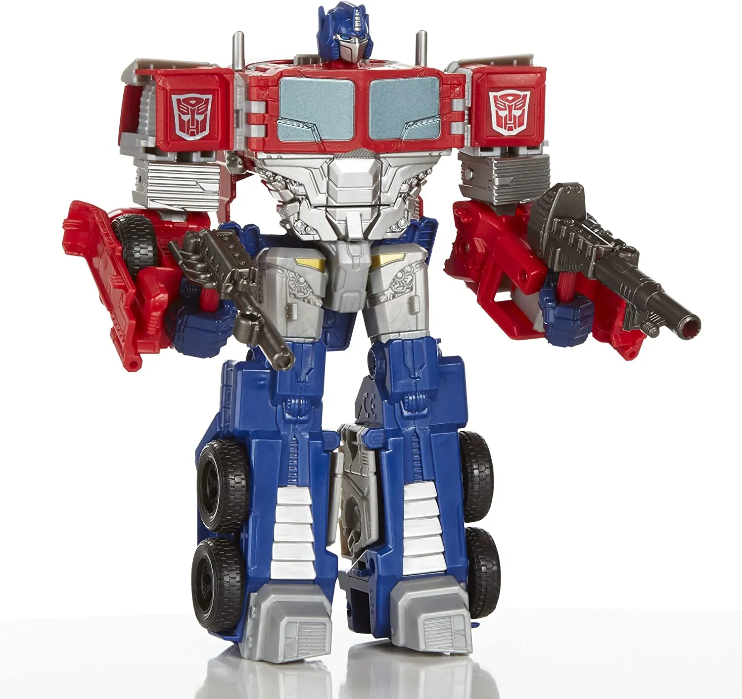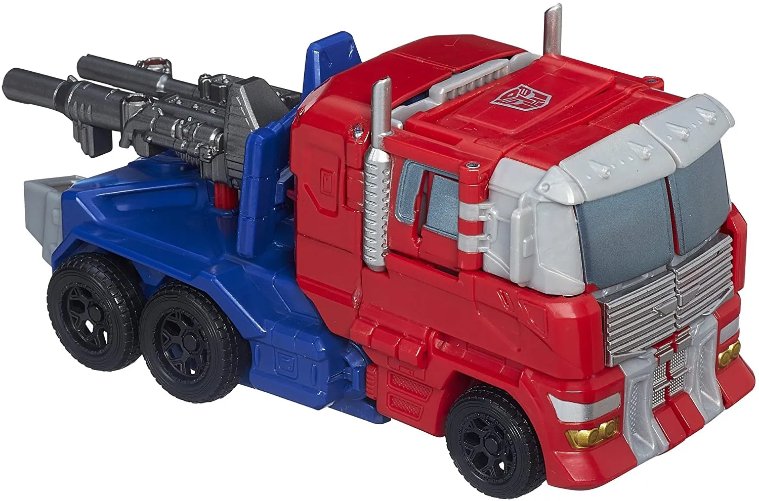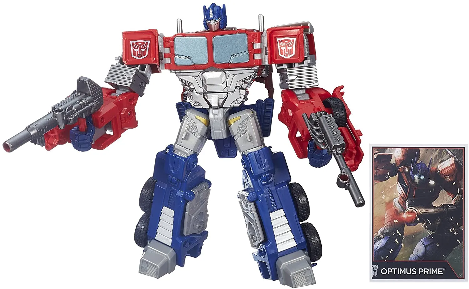 Optimus Prime transforms from robot to Semi Truck and back and includes his respective weaponry. Each Combiner Wars figure allows for an infinite amount of combining action as the joints of Voyager Class figures allow Deluxe figures to be interchanged to assemble together. Choose your favorite Decepticon or Autobot Combiner or mix and match figures as desired based on the original 80's Scramble City G1 Transformers concept.