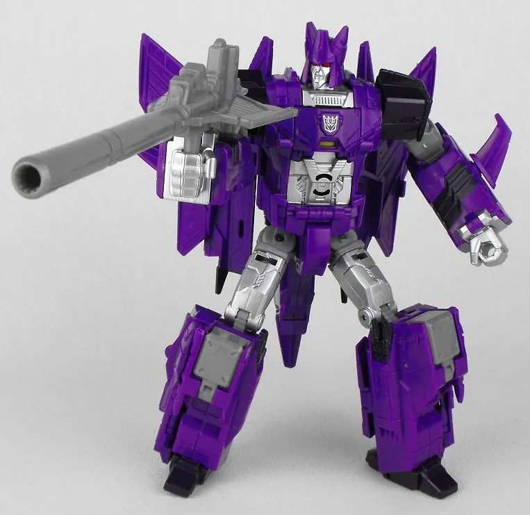 Cyclonus transforms from robot to Jet and back and includes his respective weaponry. Each Combiner Wars figure allows for an infinite amount of combining action as the joints of Voyager Class figures allow Deluxe figures to be interchanged to assemble together. Choose your favorite Decepticon or Autobot Combiner or mix and match figures as desired based on the original 80's Scramble City G1 Transformers concept.