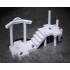 This dramatic diorama set includes a 100mm posable Cancer Deathmask, two facial expression parts, hair for when not wearing mask, one left hand, two right hands, special attack effect parts, deathmask parts (3 variations x2) Giant Crab gate, small stands x2, stairs, support arm, clips, and one set of structure parts (packaged on sprue for assembly.)