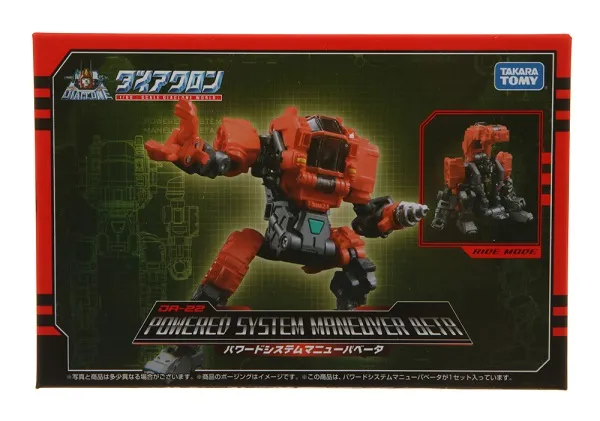 Diaclone Reboot - DA-22 Powered System Maneuver Beta is a larger scale power suit for your Diaclone Drivers! Suit is 2.5"/6.3CM tall and this set includes a gold and black Diaclone driver exclusive to this set! Included is an arm replacement with dagger and gun, Raid chamber that connects to other raid chambers (sold separately) and more!