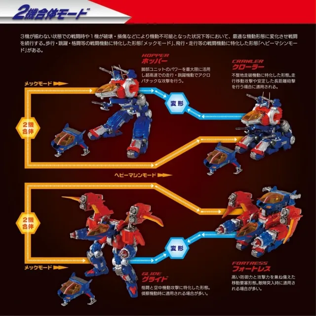 Crafted in 1:60 scale, the Dia-Battles V2 Mode robot can transform into 3 unique vehicles--Manual Mode, Scramble Mode, and Battles Triser. It can also be configured into several other modes including Hopper, Crawler, Glide and Fortress, and the Dia-Naut figures can fit inside the cockpit of each mode!