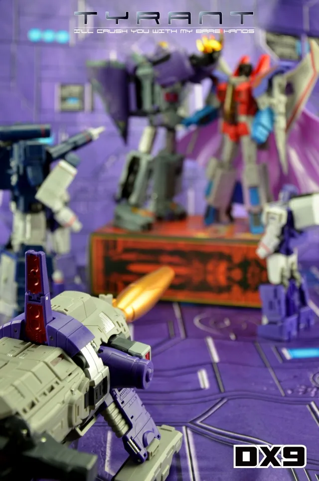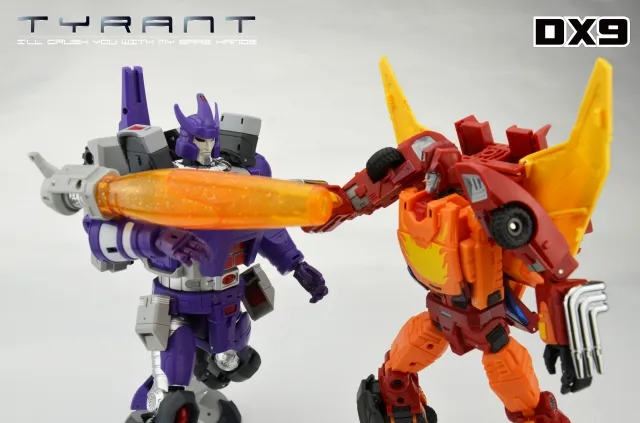 D07 Tyrant stands 10 inches tall in robot mode and scales to other figures from DX9 and to other Masterpiece scaled figures. DX9 Figures are fully transforamble, offer a high attention to detail, and are highly articulated, with figures made of high quality ABS plastic and some even include die-cast parts.