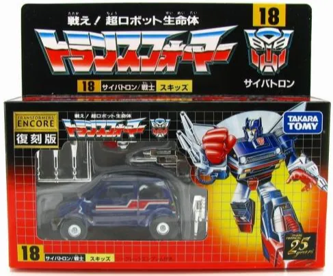 18 Skids is part of Takara Tomy's Transformers Encore series which features reissues of original Transformers G1 Generation one toys made back in the 80's. These reissues of the original robots in disguise feature the original toys in retro Japanese G1 style Takara Transformers packaging.