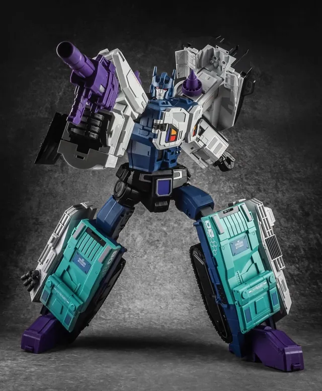 MB-08 Double Evil figure is part of Fans Hobby's Master Builder series which all figures in this series are Masterpiece scale and this figure stands 15 inches tall in robot mode. MB-08 Double Evil figure's alternate mode is a tank, plane and base with a full arsenal of weapons and accessories.