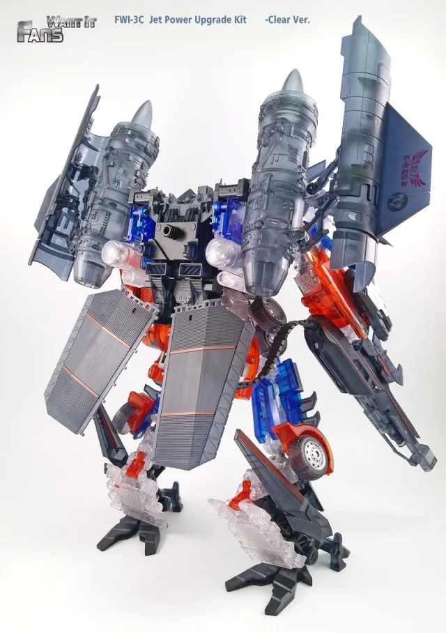 FWI-03C Clear Version is the Jet Power set add-on kit for Leader Class Optimus Prime (Sold Separately). Set Includes Jet Engine add-on parts, wings, and weaponry all in a clear version as shown. This set is just for the add-on kit, Optimus Prime sold separately.