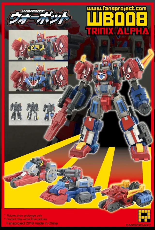 Start your Fansproject collection today with Warbot WB008 Trianix Alpha. Add this highly sought after piece to your collection today at TFSource - your source for 3rd Party collectible transforming figures.