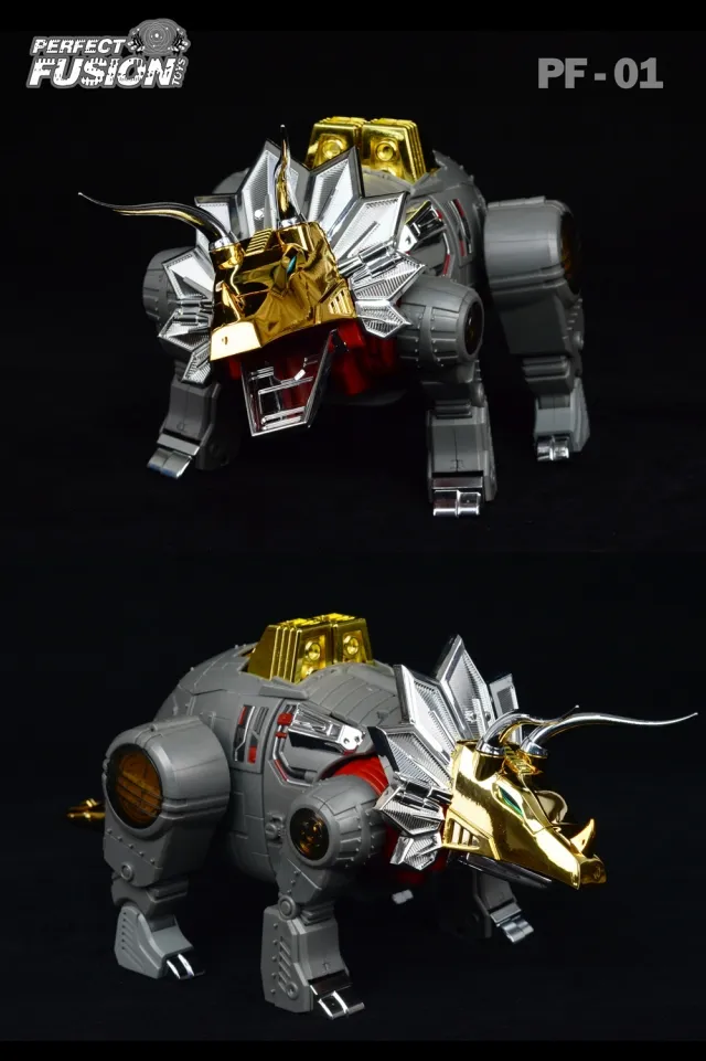 Enter Fans Toys new sub-brand, Perfect Fusion! This bad boy transforms from triceratops to robot and back. Cesium stands 25cm/10" tall in robot mode.