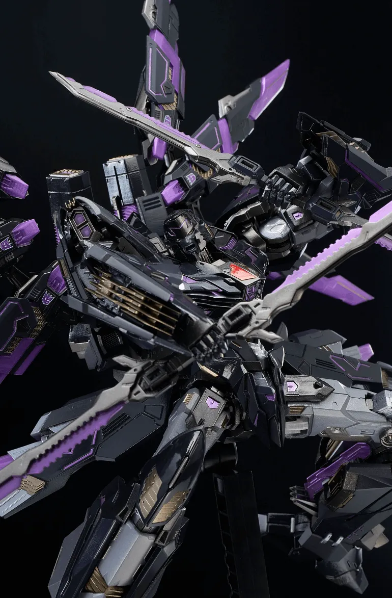 Megatron features linkage articulation gimmicks, making him super poseable, and has die-cast parts, making a heavier solid figure.
