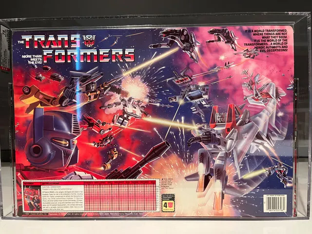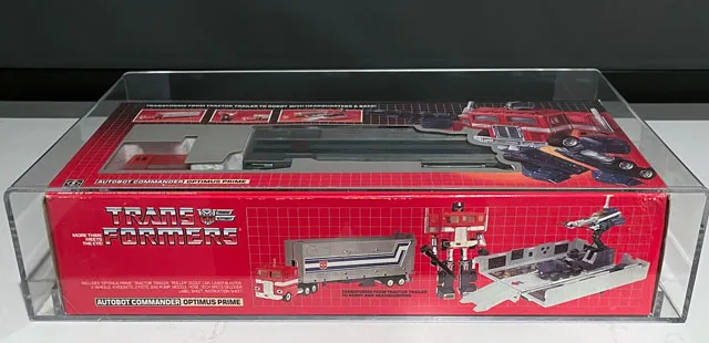 A once classic promotion. Pepsi Optimus Prime was released as a promotion exclusive by mail-order. Figure comes sealed in original box with Pepsi leaflet which included 2 Pepsi stickers that you can attach to Prime affixed to the box and AFA Graded with a score of 75. A very sought after piece of G1 history.