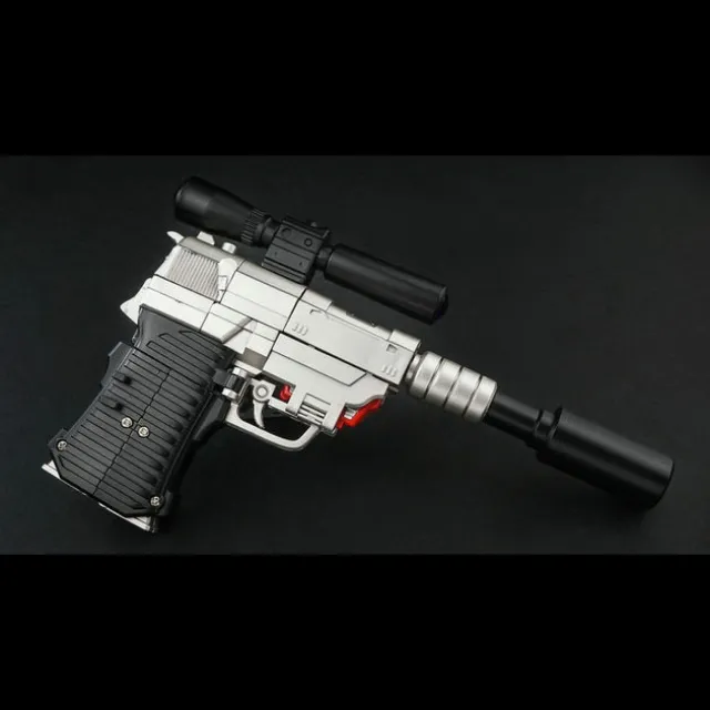 GT-05 Leaders Set 's alternate mode is a Semi-Truck and a pistol with weapons and accessories as shown.