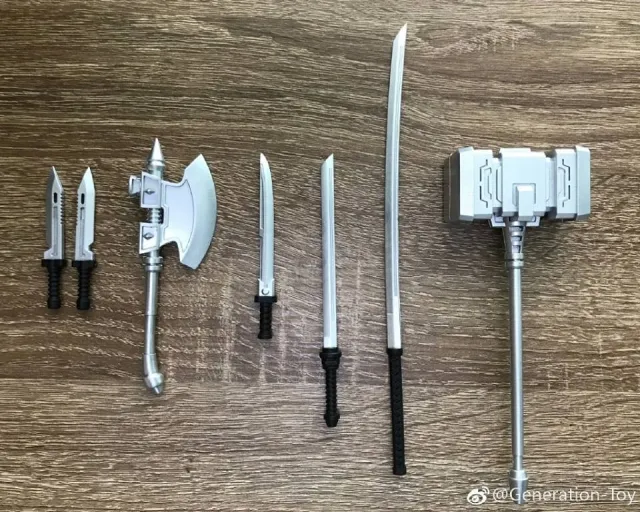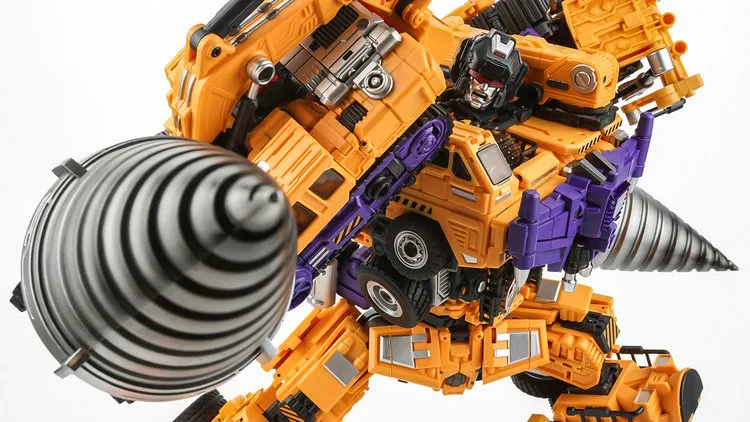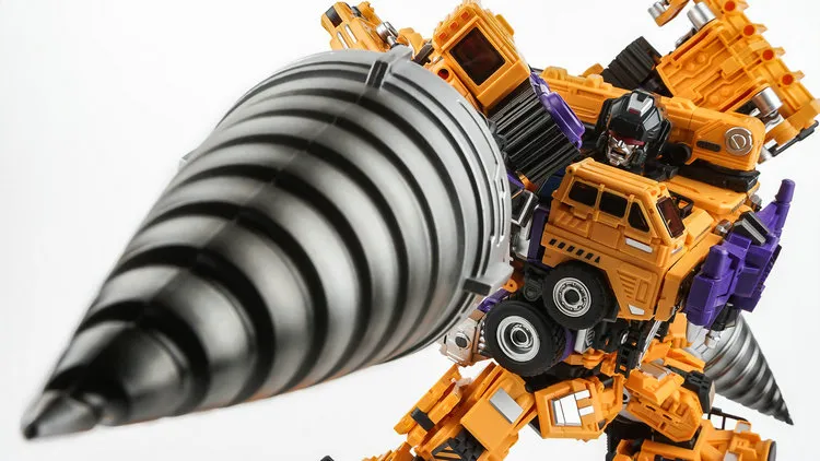 Generation Toys GT-06 Duron Drill is a limited edition orange version of the regular Gravity Builder figures that comes in giftset packaging and includes two massive drills that mount on his arms! When fully combined Duron Drill stands roughly 38 CM/15 inches tall. Includes special assassin weapons pack as shown, featuring an arsenal of new weaponry for individual figures as well as the drills for the combined bot!