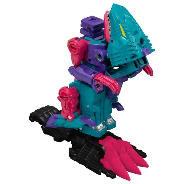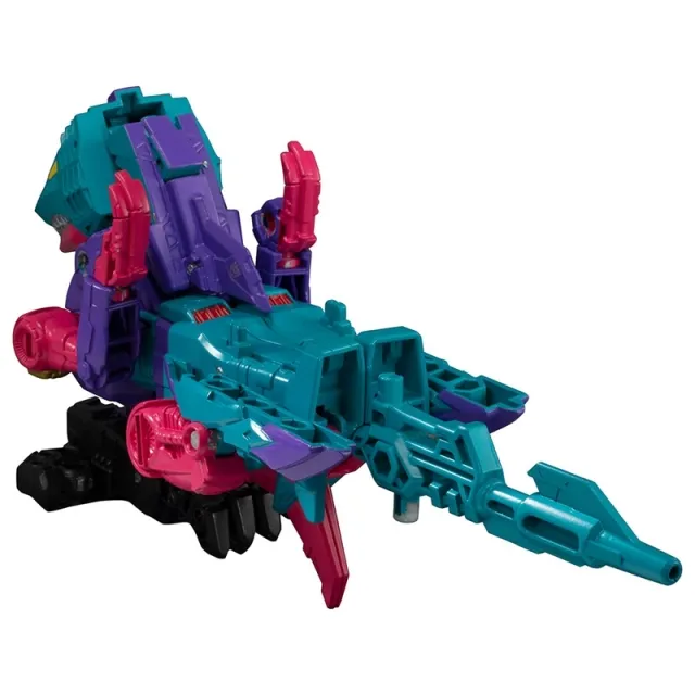 As a member of the Seacons, Overbite may be a mindless drone, but he’s always up for a hunt and taking out an Autobot or two. Adorned with a beautiful magenta and aquamarine color scheme, he remains true to his cartoon appearance while maintaining an intimidating personality. The figure is made of sturdy, high-quality plastic and features good articulation in the knee, foot and arm joints. As a member of the Seacons, this magnificent monster is equipped with his own weapon accessories and combiner parts. Each Seacon figure is a great collector’s piece in its own right, but they really pop when you assemble the entire crew.