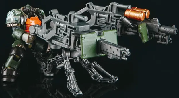 The fortifications include a mechanized tactical backpack and an unmanned ground vehicle. The mechanized tactical backpack is equipped with light machine guns and flame throwers, allowing it to simultaneously handle short and mid-range foes; if necessary, the weapons can also be removed for manual operation.