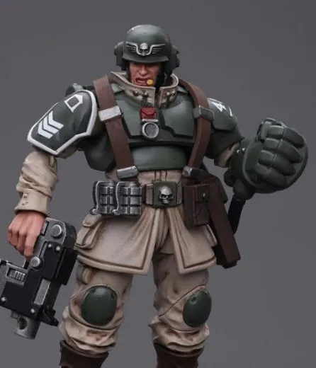 Warhammer 40K Astra Militarum Cadian Command Squad Veteran Sergeant with Power Fist 1/18 Scale is highly articulated!