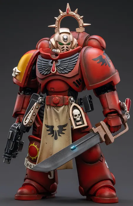 Blood Angels Lieutenants are expected to take command, should a superior officer fall to the Red Thirst, and assume the role of the Sword of Sanguinius - failure is the only unforgivable sin in this role, while victory excuses any amount of savagery. This 1/18 scale highly articulated Warhammer 40K action figure comes with a variety of weapon accessories and interchangeable parts, and measures about 5-inch tall.