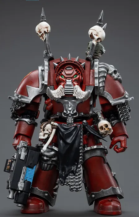 This is a 1/18 scale highly detailed, articulated figure based on Warhammer 40k's Chaos Terminator Garchak Vash of the Chaos Space Marines Word Bearers. The Chaos Terminator Garchak Vash figure stands just over 5 inches tall and comes with several interchangeable parts and accessories, opening the door to a plethora of different and unique display opportunities.