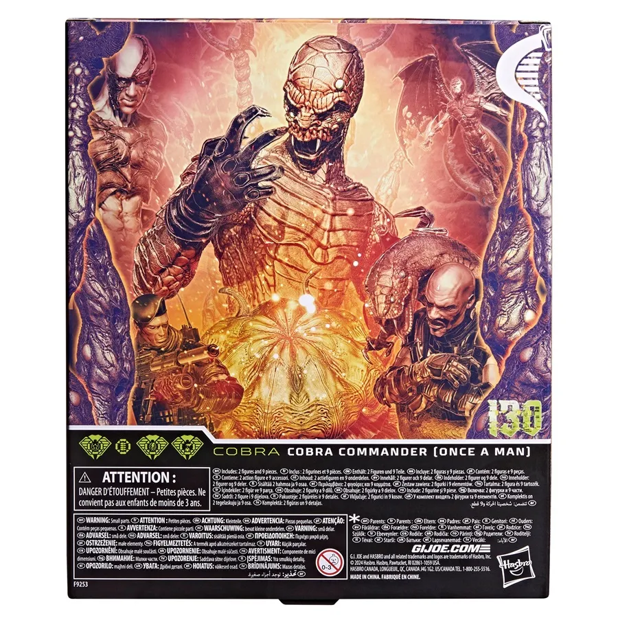 New to the G.I. JOE Classified Series line, Cobra Commander (Once A Man) comes ready for adventure, with multiple points of articulation for high poseability. Inspired by the character’s mutated appearance in G.I. JOE: The Movie, this 6-inch action figure contains 9 character-inspired accessory pieces including 4 alternate hands, alternate helmeted head, cracked faceplate, dagger, backpack, and weapon accessory. Includes an additional figure of Cobra Commander degenerated and mutated into primitive snake form.