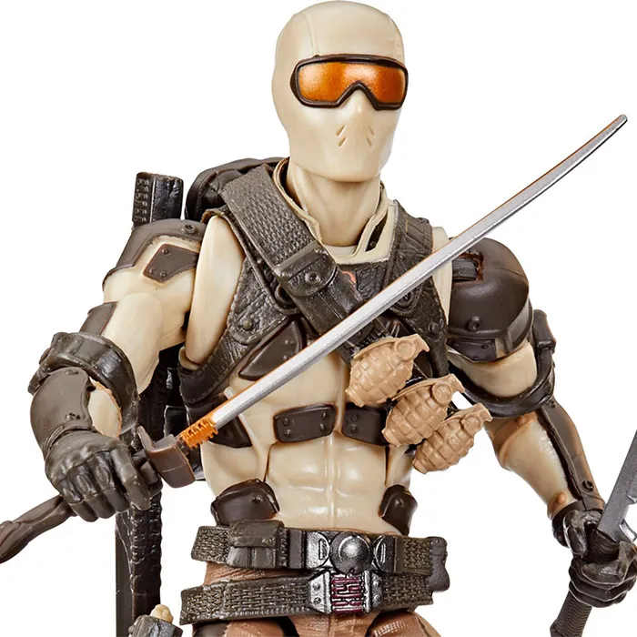 Desert Commando Snake Eyes comes ready for adventure, with multiple points of articulation for high poseability. This Desert Commando Snake Eyes figure contains 9 character-inspired accessories including a backpack, scabbard, two swords, knife, removable grenade bandolier, and two weapon accessories with an interchangeable suppressor; plus a footlocker to stow all his gear! Geared up for a desert mission, Snake Eyes is ready to blow in like a sirocco and vanish without a trace.