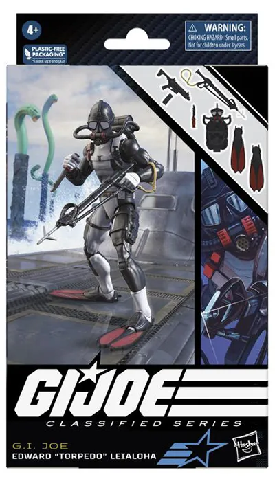 G.I. Joe is a highly skilled, on-demand, special operations force of men and women from around the globe. tasked with defending the world from Cobra, a ruthless criminal organization bent on total domination. The brave members of G.I. Joe are prepared to seek out Cobra in any environment on the planet. From hostile jungles to ice-clad arctic peaks…wherever there’s trouble, G.I. Joe is there. New to the G.I. Joe Classified Series line, Edward 'Torpedo' Leialoha comes ready for adventure, with multiple points of articulation for high poseability. This Edward 'Torpedo' Leialoha figure contains 6 character-inspired accessories including his scuba gear with air tank, removable fins, and weapon accessories; plus a footlocker to stow all his gear! Native Hawaiian and strict vegetarian Torpedo was SCUBA instructor prior to joining the Joes. Spending so much time alone underwater makes him come across as aloof, but he’s a consummate professional.