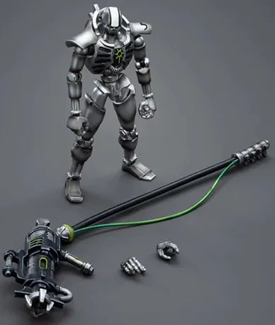 This is a 1/18 scale highly detailed, articulated figure based on Warhammer 40k's Immortal Necron from the Sautekh Dynasty. The Immortal Necron figure comes with several interchangeable parts and accessories, opening the door to a plethora of different and unique display opportunities.