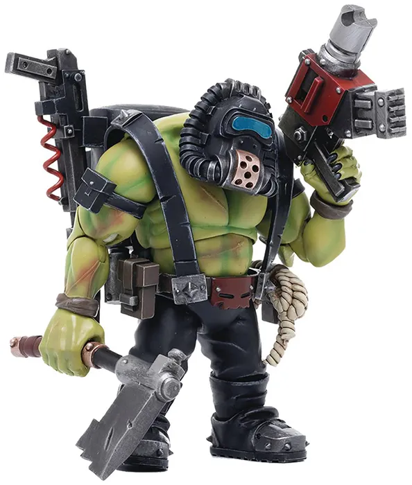 No right-thinking Ork trusts Kommandos. They sneak up on the enemy rather than charging in headlong, and have an unhealthy fascination with very big knives and their application to people's backs, throats and guts. That said, having a band of Kommandos ambush the enemy mid-battle definitely has its uses! Joy Toy brings the Ork Kommandos from Warhammer 40k to life with this new series of 1/18 scale figures. Each figure includes interchangable hands and weapon accessories and stands about 5" tall.