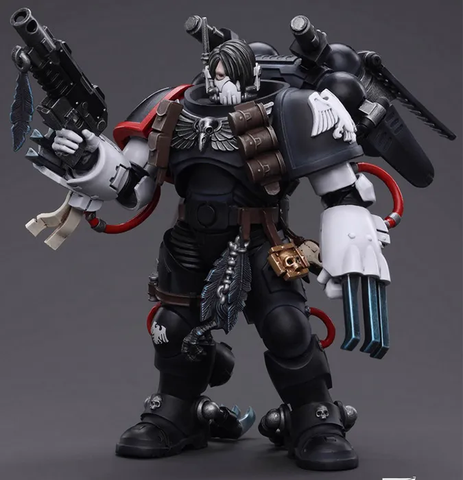Masters of stealth and guerilla warfare, the Raven Guard chapter of Space Marines works covertly to support the Emperor. Patient and cunning to a fault, they overwhelm their opponents through shocking speed with devastating accuracy. Each figure typically includes interchangeable hands and weapon accessories and stands between 4 inches and 6 inches tall.