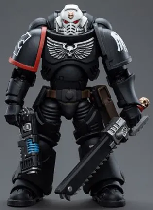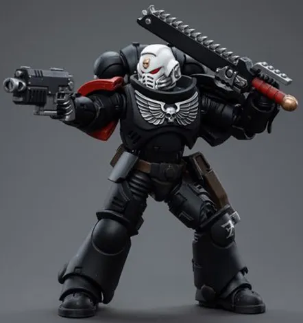 Masters of stealth and guerilla warfare, the Raven Guard chapter of Space Marines works covertly to support the Emperor. Patient and cunning to a fault, they overwhelm their opponents through shocking speed with devastating accuracy. Each figure typically includes interchangeable hands and weapon accessories and stands between 4 inches and 6 inches tall.