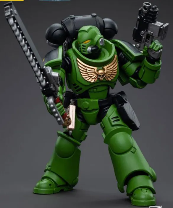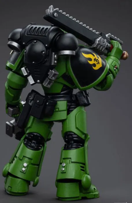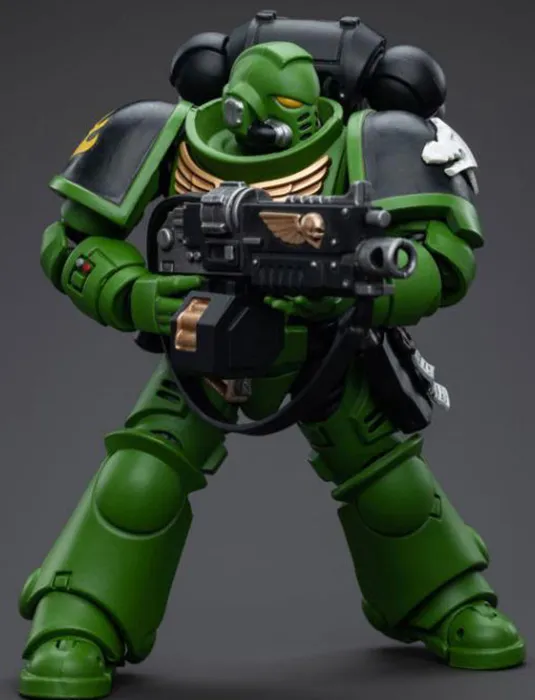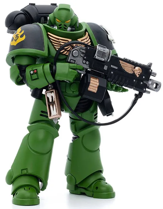 Hailing from a volcanic and unstable world, the Space Marine Chapter of the Salamanders take great care to avoid human casualties during their wars against Chaos. Deeply embedded in the Promeathan Cult, these warriors hone their skills to a lethal edge to protect Humanity. Each figure typically includes interchangeable hands and weapon accessories and stands between 4 inches and 6 inches tall.
