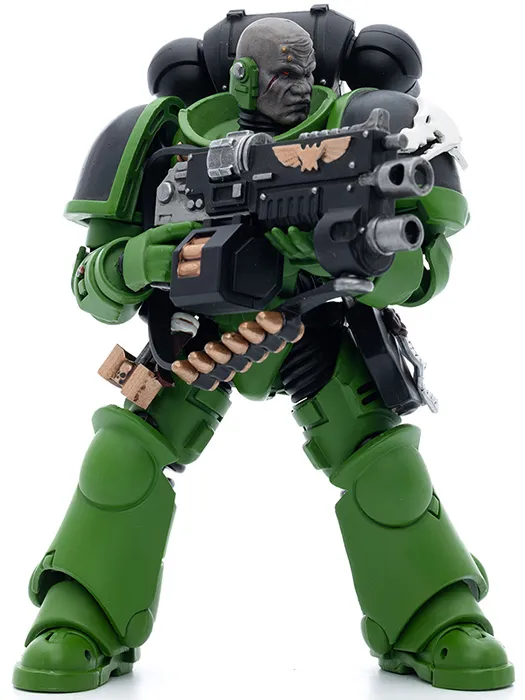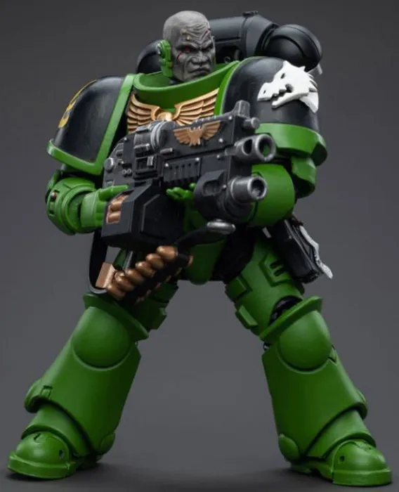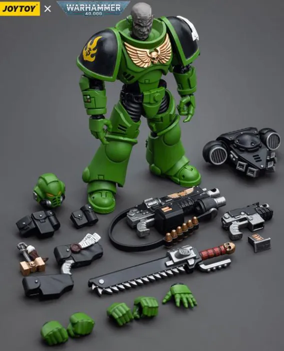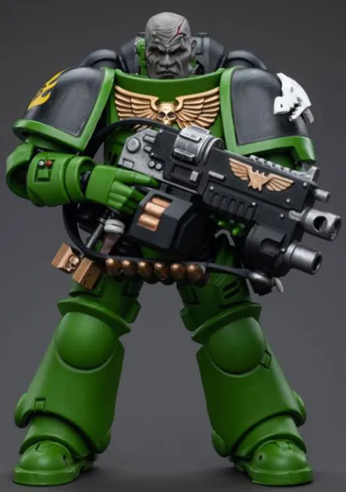Hailing from a volcanic and unstable world, the Space Marine Chapter of the Salamanders take great care to avoid human casualties during their wars against Chaos. Deeply embedded in the Promeathan Cult, these warriors hone their skills to a lethal edge to protect Humanity. Each figure typically includes interchangeable hands and weapon accessories and stands between 4 inches and 6 inches tall.