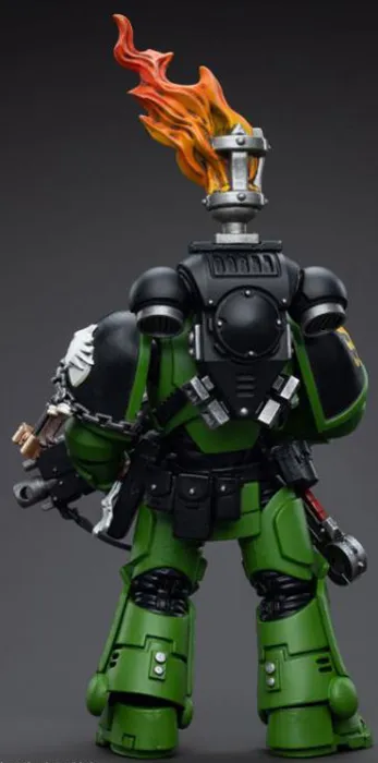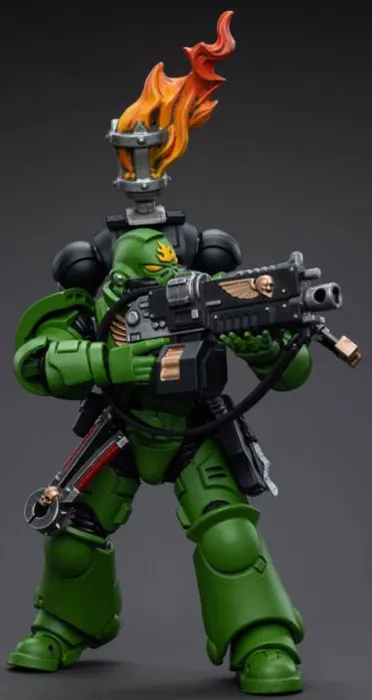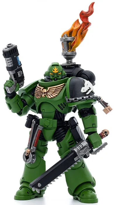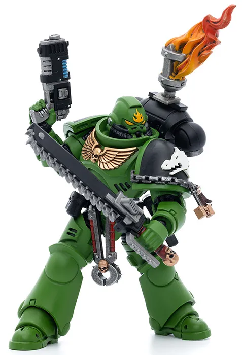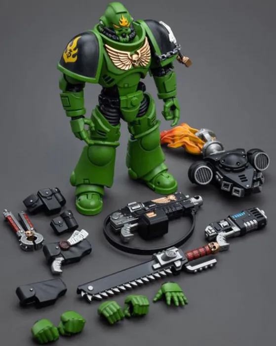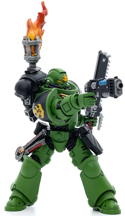 Hailing from a volcanic and unstable world, the Space Marine Chapter of the Salamanders take great care to avoid human casualties during their wars against Chaos. Deeply embedded in the Promeathan Cult, these warriors hone their skills to a lethal edge to protect Humanity. Each figure typically includes interchangeable hands and weapon accessories and stands between 4 inches and 6 inches tall.