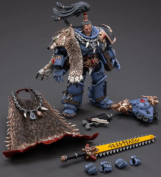 Warhammer 40K Space Wolves Ragnar Blackmane 1/18 Scale includes a variety of accessories!