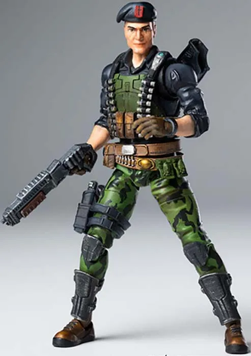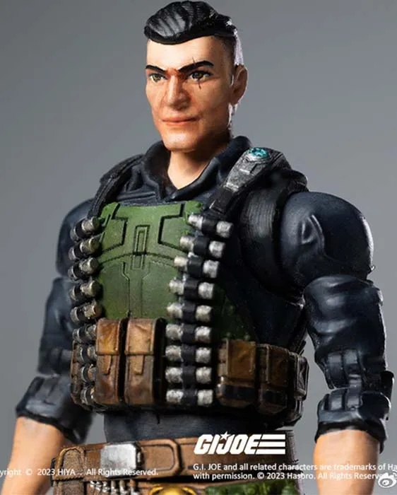 With his resolute face and piercing eyes, Flint is unmistakable. He wears a fitted camouflage combat suit, ensuring ease of movement on the battlefield. The addition of black gloves provides protection and enhances his agility.