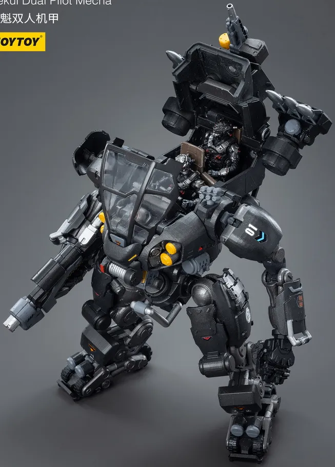 Joy Toy's military vehicle series continues with the Tiekui Dual Pilot Mecha! Each 1/18 scale articulated military mech and pilot features intricate details on a small scale and comes with equally-sized weapons and accessories.