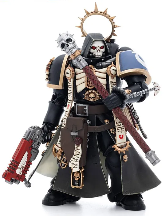 From Bloomage Joytoy Tech. From the collaboration between JoyToy and GameWorkshop comes the Warhammer 40K Ultramarines Primaris Chaplain Brother Varus. Standing at a compact 4.7 inches tall, this intricately detailed figure captures the essence of the elite warriors from the Ultramarines Space Marine Chapter. Crafted from high-quality ABS and PVC materials, this 1/18 scale figure features multiple points of articulation, allowing for dynamic posing options. The figure comes complete with accessories, including a jetpack, wand, rifle, two pairs of hands, a book, and chains, enhancing its playability and display options.