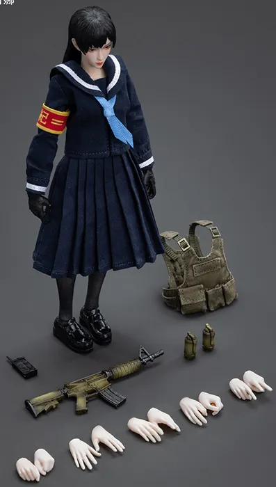 From Joy Toy 1/12 scale figure line Frontline Chaos comes Xena, dressed in in real cloth and stylish clothing with interchangeable parts and accessories, including alternate hand parts and different weapons to wield.