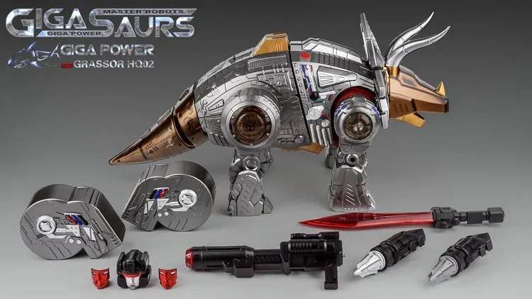 Get ready to take your collection to the next level with HQ-02 Grassor Metallic Version the latest figure from Gigapower. HQ-02 Grassor Metallic Version is Masterpiece scale and stands 11.02 inches tall in robot mode. HQ-02 Grassor Metallic Version transforms into a Triceratops and includes a full arsenal of weapons and accessories.