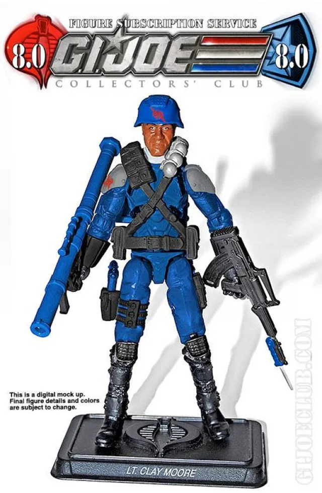 G.I. JOE - Subscription Figure 8.0 Lt. Clay Moore is the Cobra Shock Troops Commander and includes an arsenal of weaponry. GIJOE Limited edition exclusive figure from the joe club is Subscription figure 8.0 series released in 2018. Figure comes MOSC and is factory sealed.