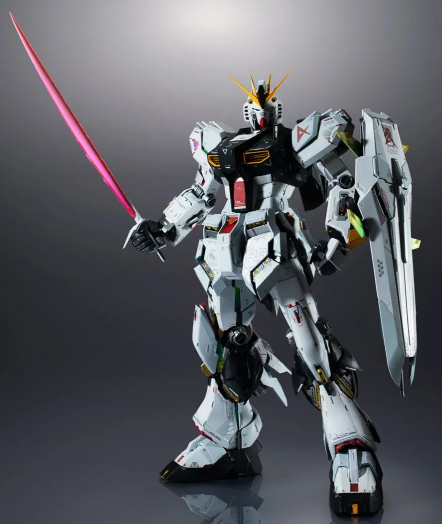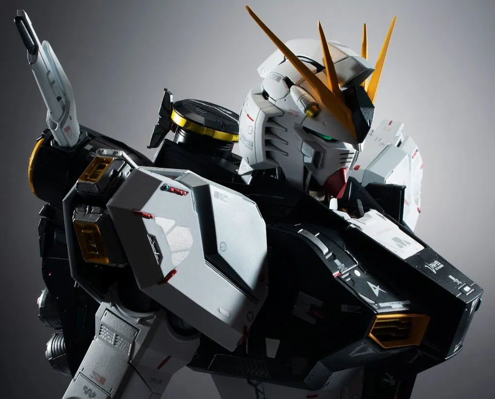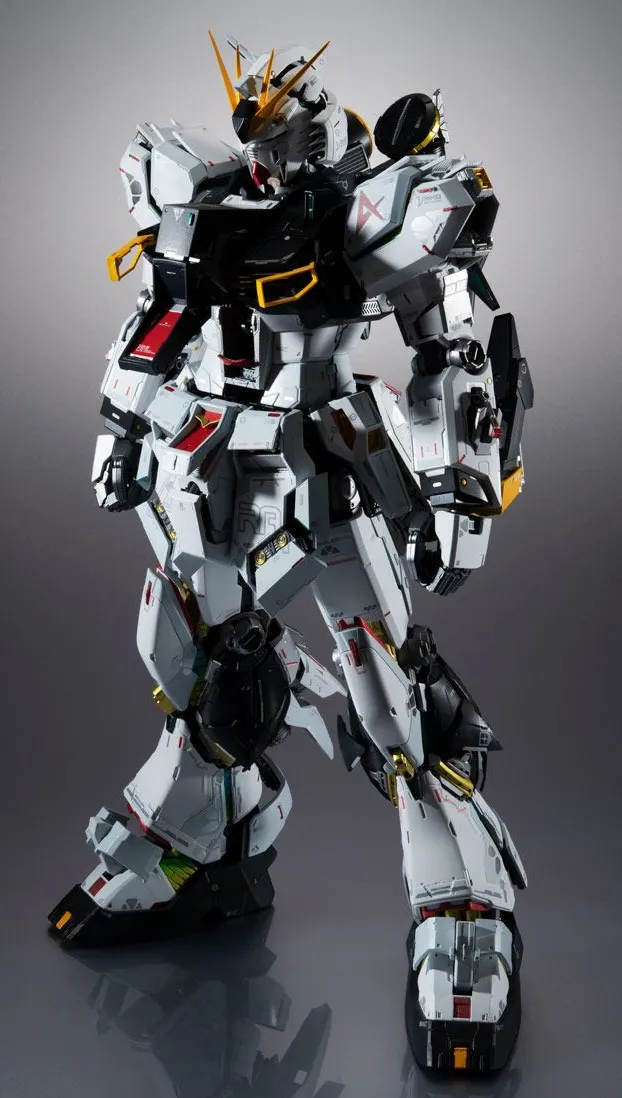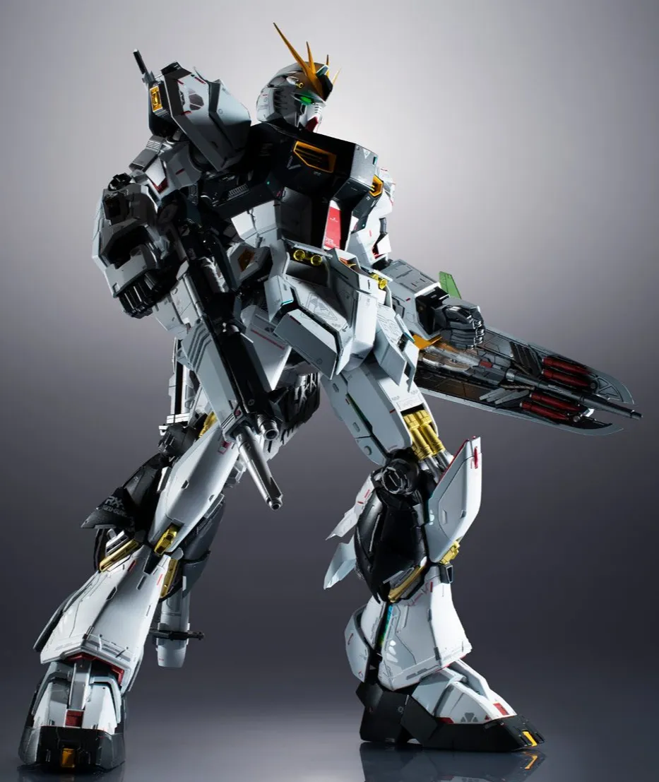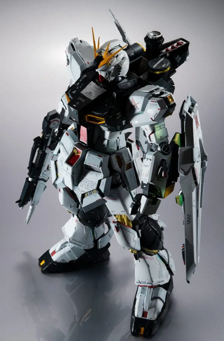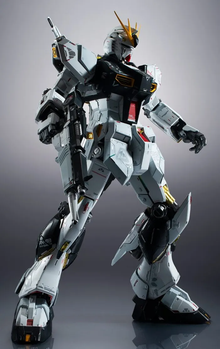 The RX-93 v (Nu) Gundam is the star mobile suit from the classic animated film "Gundam: Char's Counterattack." This METAL STRUCTURE figure is the definitive portrayal of this legendary character, created with exquisite detail to bring out the reality of this titanic warrior.