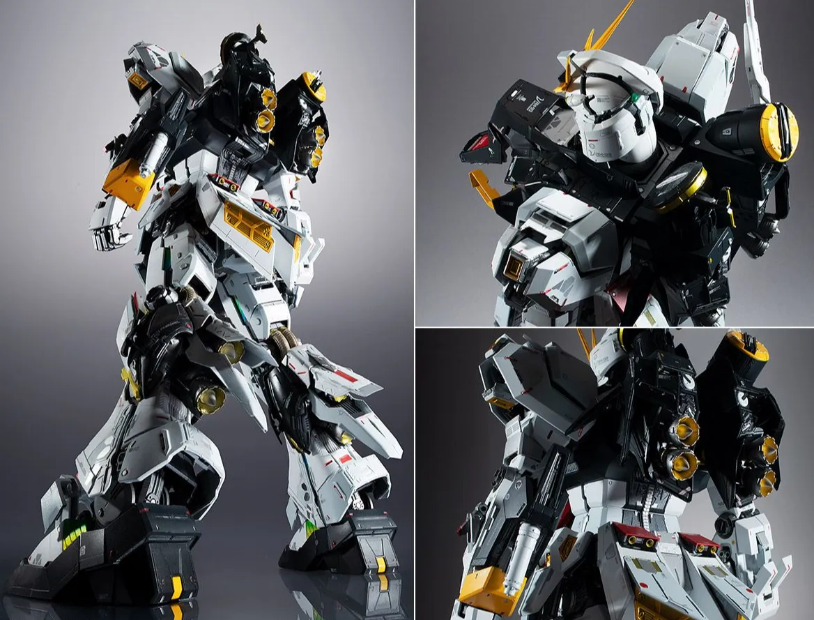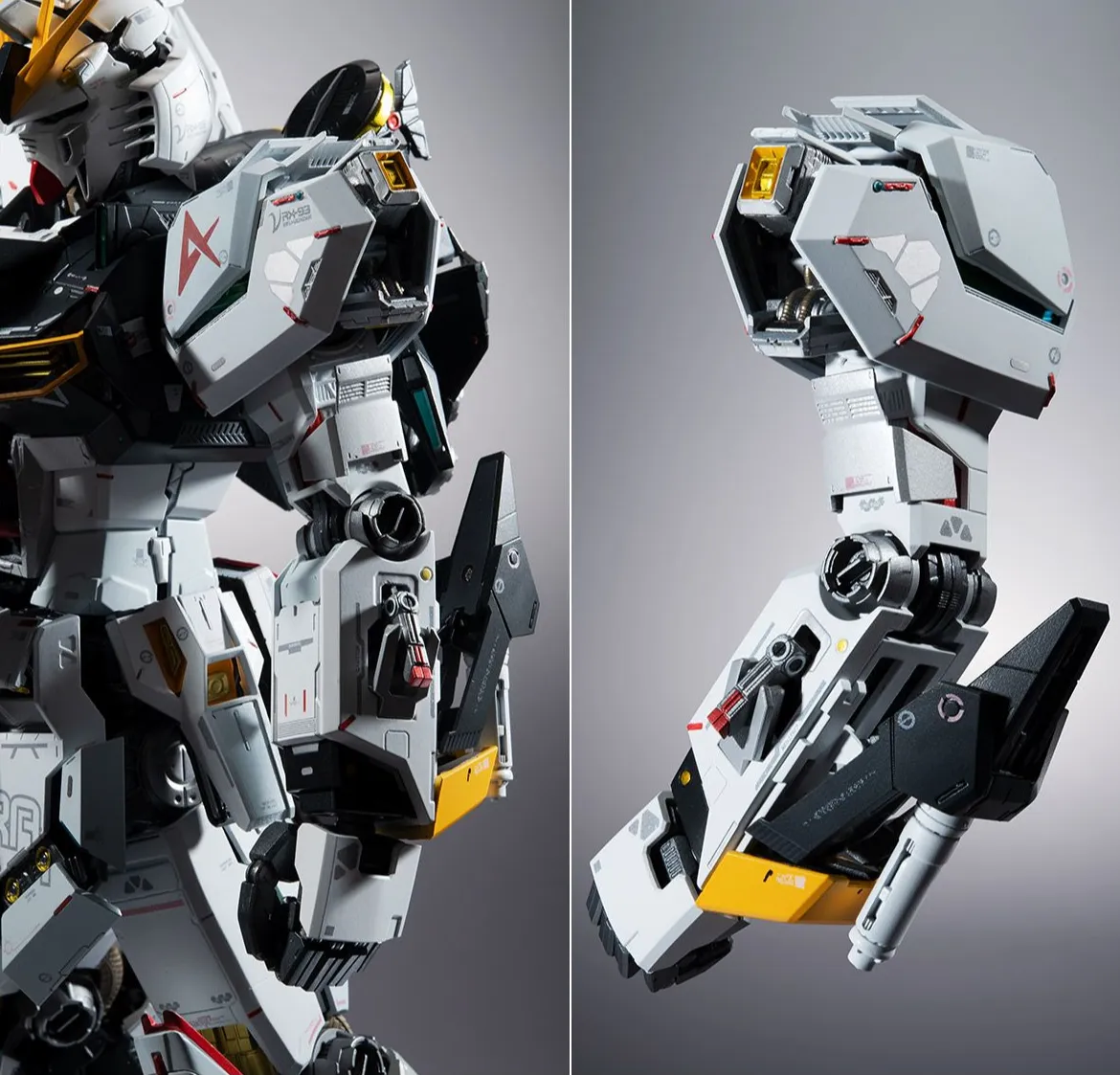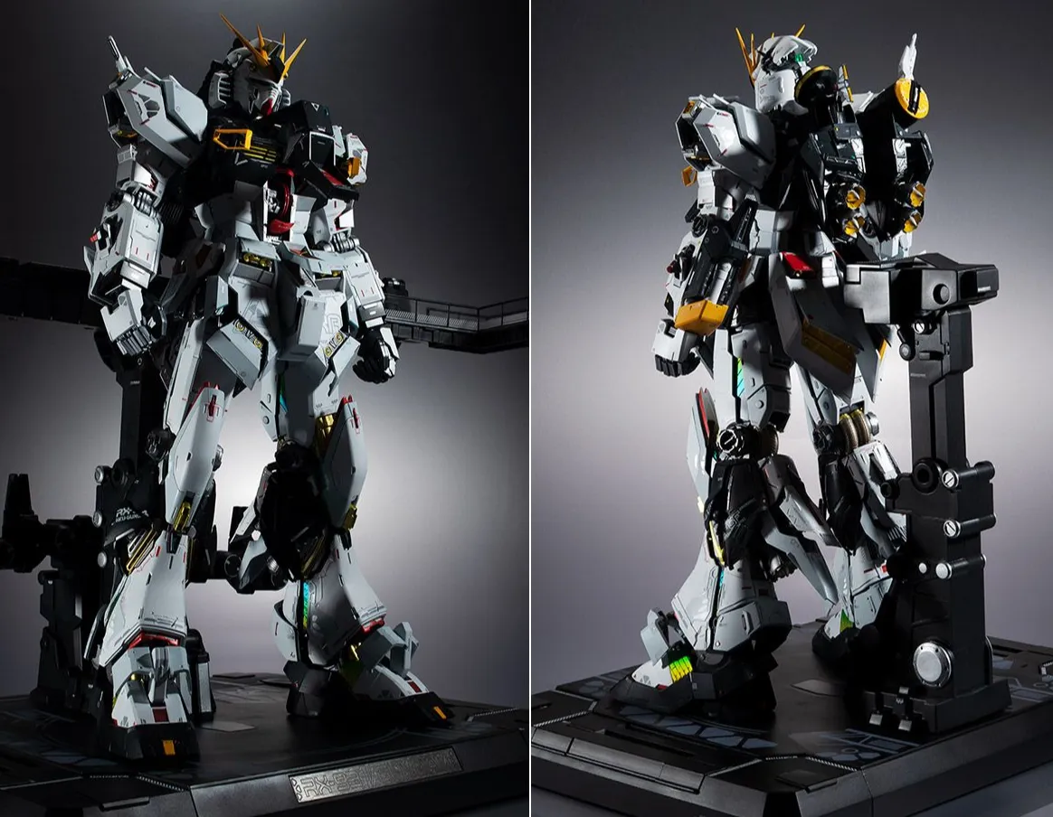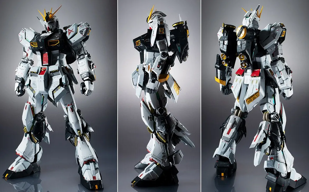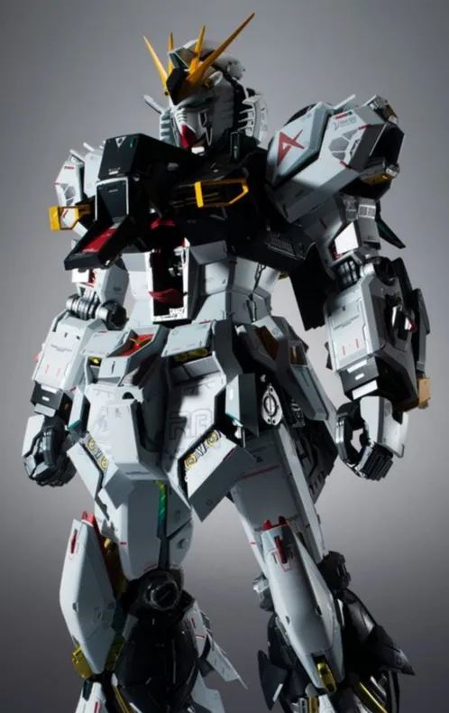 The RX-93 v (Nu) Gundam is the star mobile suit from the classic animated film "Gundam: Char's Counterattack." This METAL STRUCTURE figure is the definitive portrayal of this legendary character, created with exquisite detail to bring out the reality of this titanic warrior.