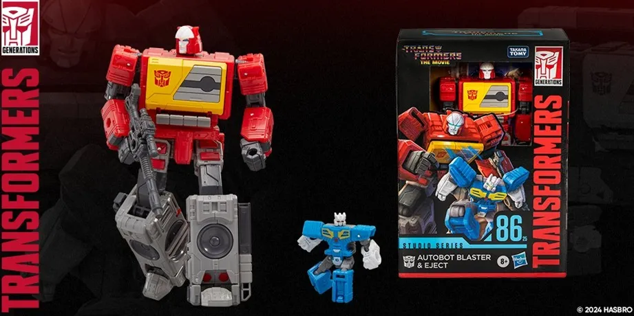 Transformers Studio Series 86-25 Autobot Blaster and Eject is Voyager Class and stands approximately 6.5-inches tall in robot mode. 86-25 Autobot Blaster and Eject transforms from Boombox to robot and back and is screen accurate to the Transformers: The Movie 86 live action movie. Each Studio Series figure jumps out of the big screen and into your collection with a high attention to detail and accurate color schemes reflecting their appearance in the Transformers live action movie.