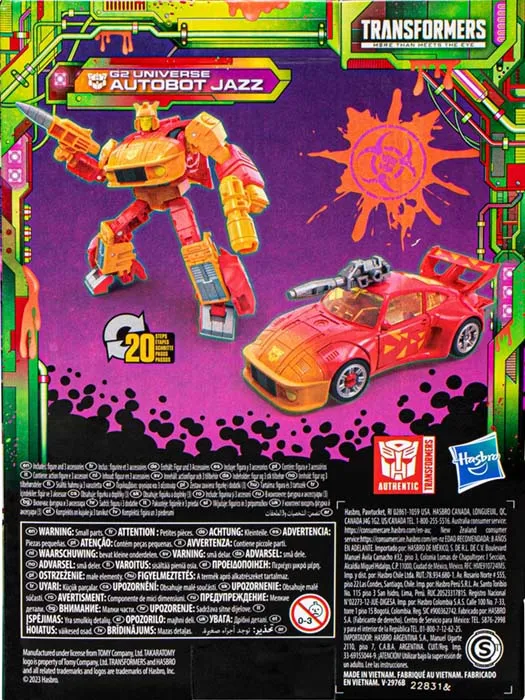 G2 Universe Autobot Jazz transforms from a robot into a race car and back in 20 steps!