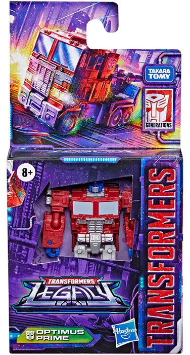 Transformers Generations Legacy Optimus Prime Core Class comes in window-box packaging!