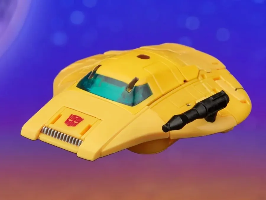 This 5.5-inch Origin Bumblebee action figure converts between robot and Cybertronian hovercraft modes in 23 steps. The figure comes with a blaster and 5 energy accessories that attach in robot mode.