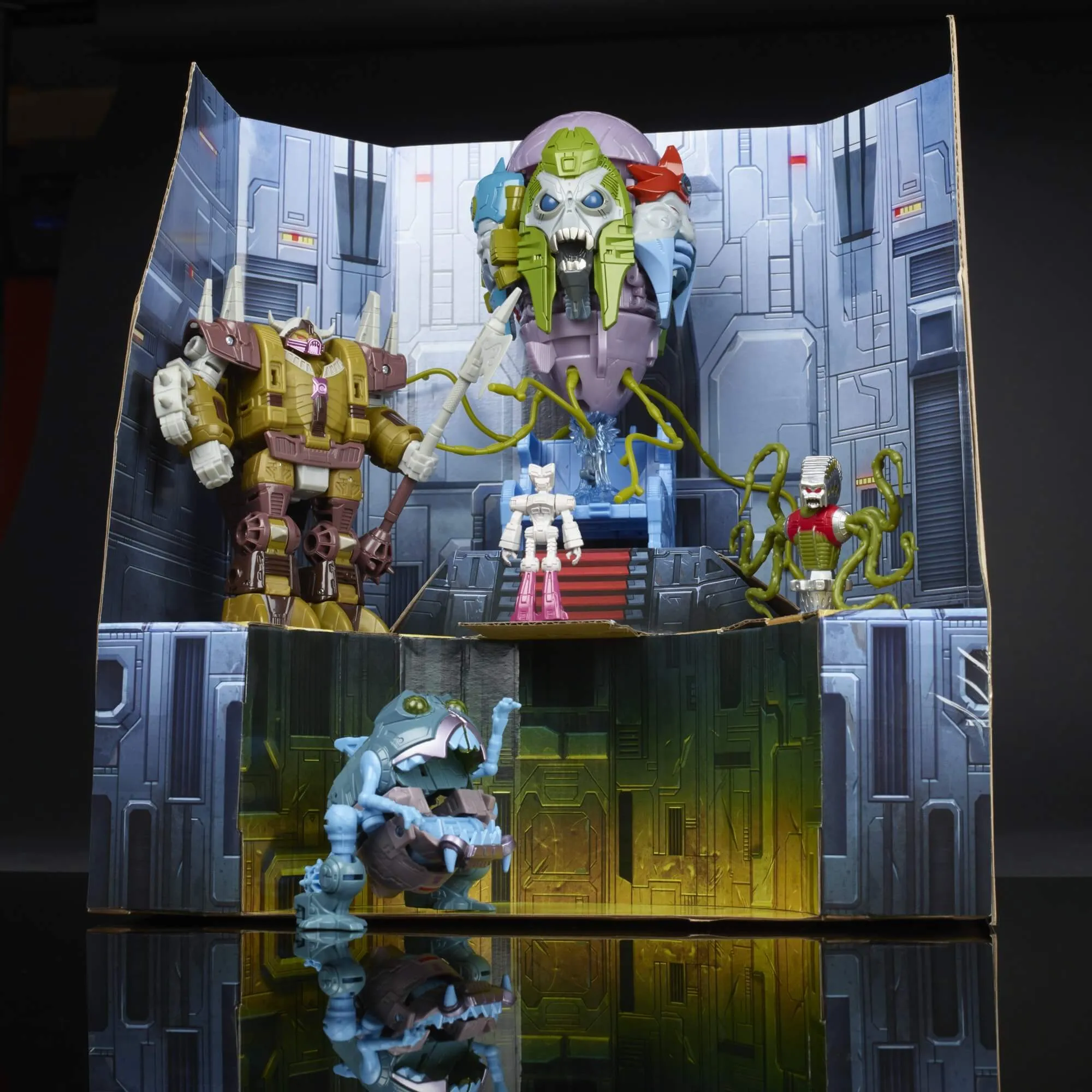 Spare me this mockery of justice! From the classic 1986 movie, The Transformers: The Movie, this 5-pack is inspired by the iconic scene where the Quintesson Judge decides the fate of Kranix. If you’re guilty, you will be fed to the Sharkticons. If you’re innocent, you will be fed to the Sharkticons. Experience Quintesson justice with this epic pack!